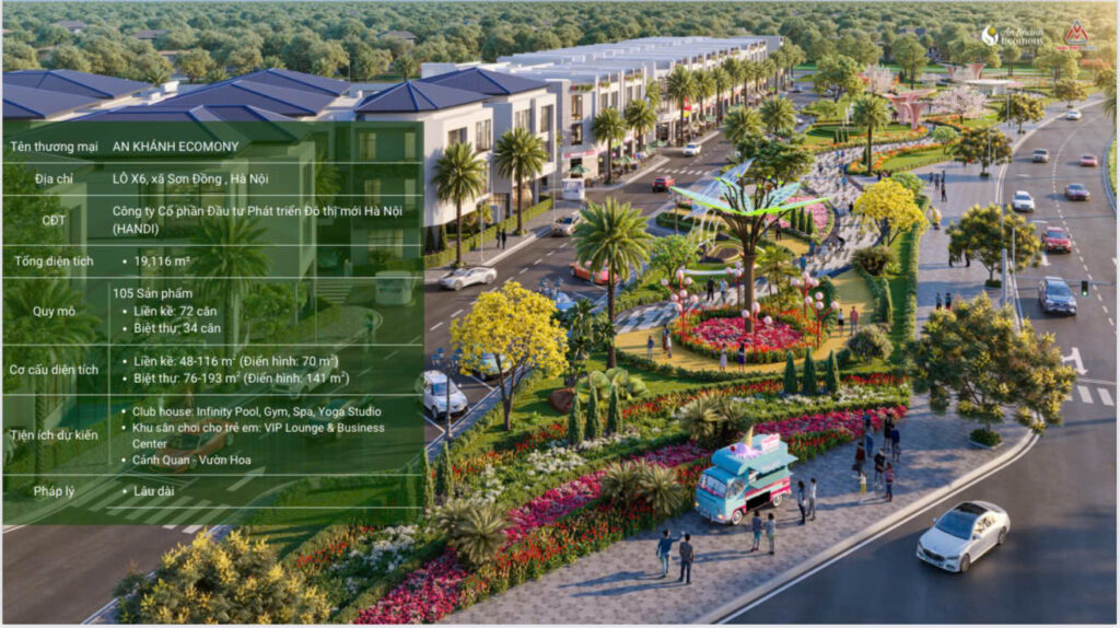 Dự án An Khánh Ecomony có quy mô 2ha bao gồm 105 sản phẩm được quy hoạch bài bản, cung cấp đa dạng các loại hình sản phẩm như biệt thự, liền kề, shophouse.. kiến tạo nên một không gian sống đẳng cấp, diện tích linh hoạt từ 48 – 193m2 cùng thiết kế xây dựng 4 tầng, tối ưu hóa công năng và giá trị khai thác.